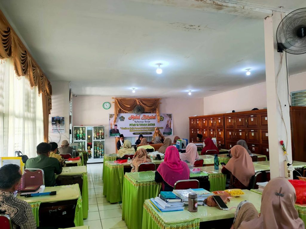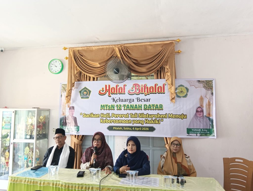 Pitalah , Humas – Memanfaatkan momentum bulan Syawal, keluarga besar Madrasah Tsanawiyah Negeri (MTsN) 12 Tanah Datar menyelenggarakan acara Halal Bihalal Idul Fitri 1447 Hijriyah pada Sabtu (4/4). Acara ini menjadi ajang mempererat tali silaturahmi antara seluruh tenaga pendidik, kependidikan, serta pengurus Komite Madrasah.