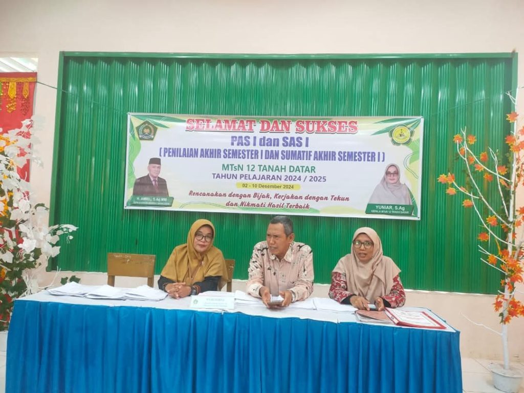 Pitalah, [05/12/2024] – Pengawas madrasah dari Kantor Kementerian Agama Kabupaten Tanah Datar Bapak Drs. Husaini,M. Pd melakukan monitoring langsung terhadap pelaksanaan Penilaian Akhir Semester (PAS) 1 dan Sumatif Akhir Semester (SAS) 1 di MTsN 12 Tanah Datar. Kunjungan ini bertujuan untuk memastikan pelaksanaan ujian berjalan lancar, tertib, dan sesuai dengan prosedur yang telah ditetapkan.