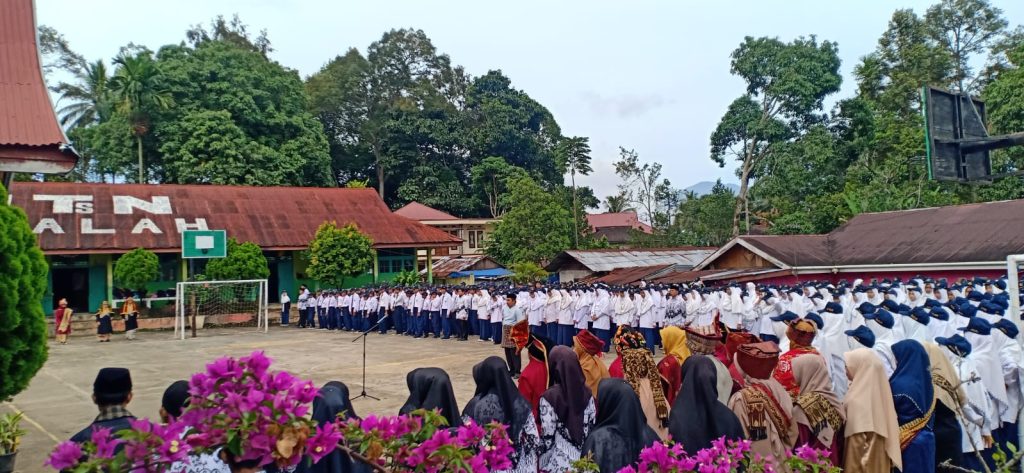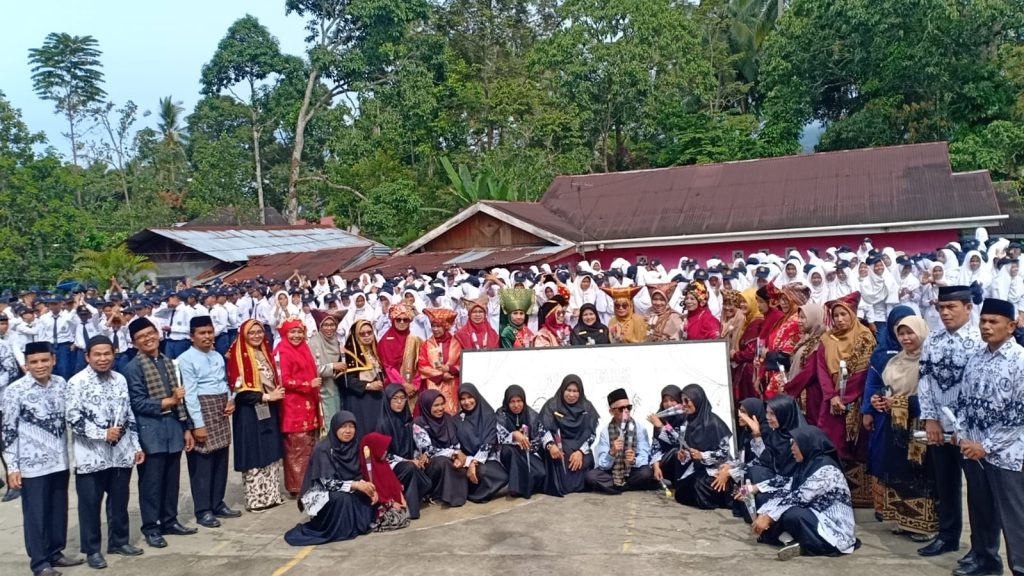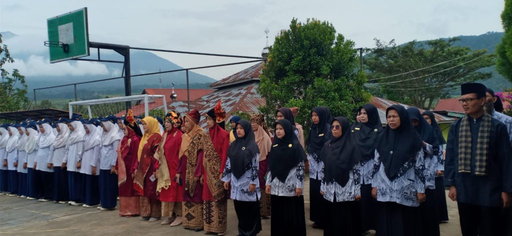 Rayakan Puncak Peringatan Hari Guru Nasional dan HUT PGRI Ke-78 Tahun 2023, Pendidik dan Tendik MTsN 12 Tanah Datar Kenakan Beragam Kostum Adat Minang