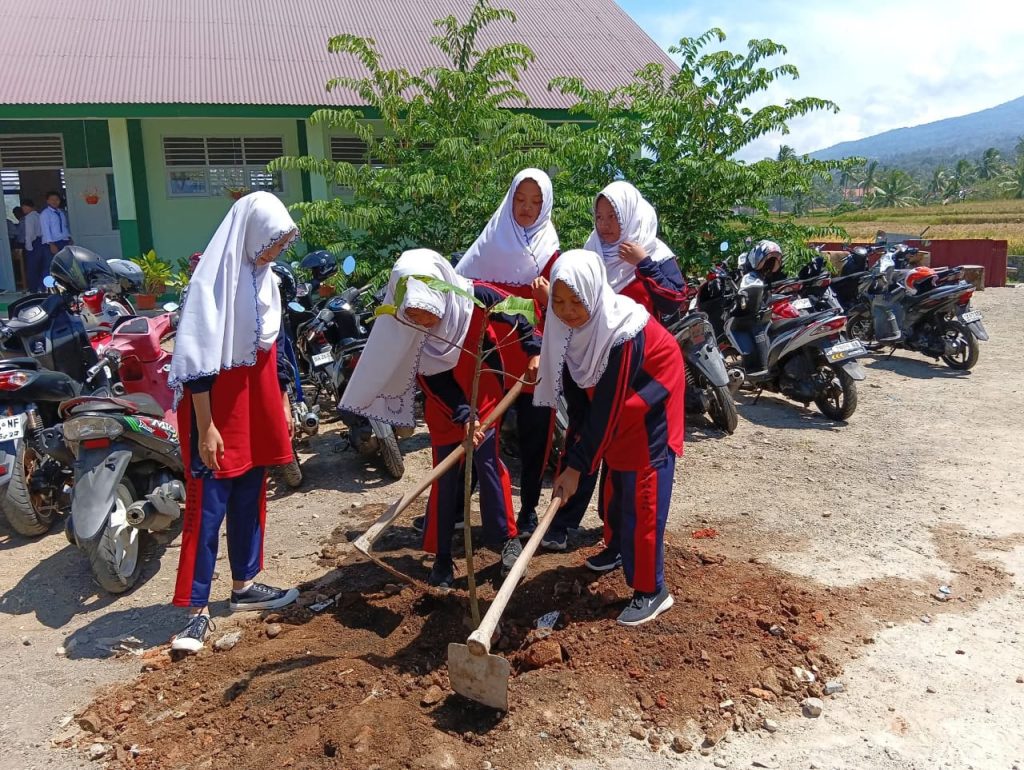 Wujudkan Ekoteologi, Siswa Baru MTsN 12 Tanah Datar Tanam Pohon Ketapang
