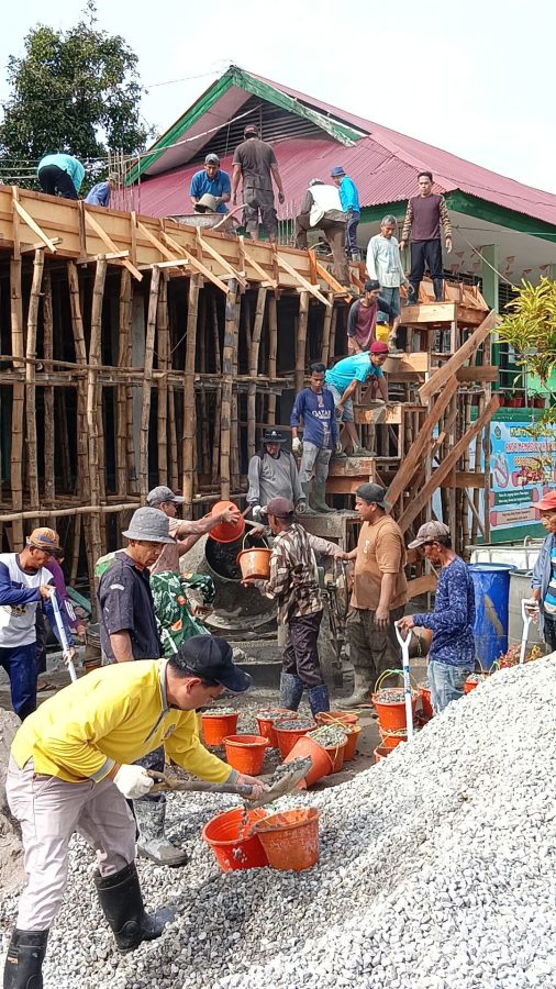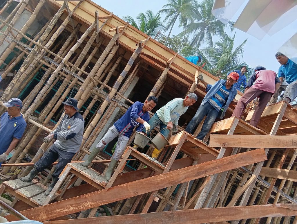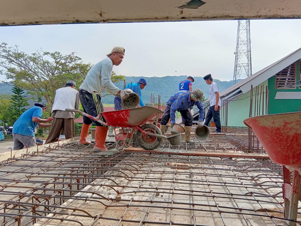 Wujudkan Pelayanan Prima, Komite dan Keluarga Besar MTsN 12 Tanah Datar Gotong Royong Pengecoran Ruang Kelas Baru